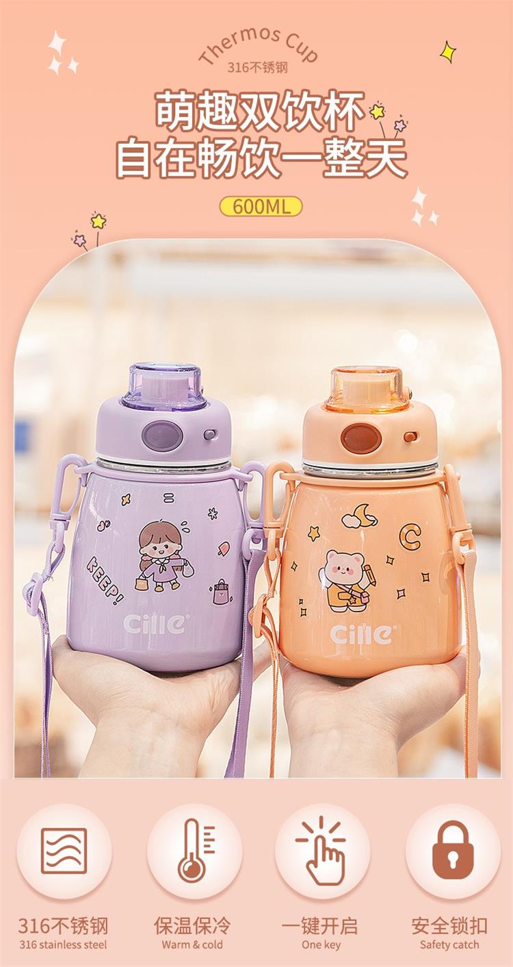 希乐保温大肚杯(小)600mI 粉/绿/蓝/白/紫