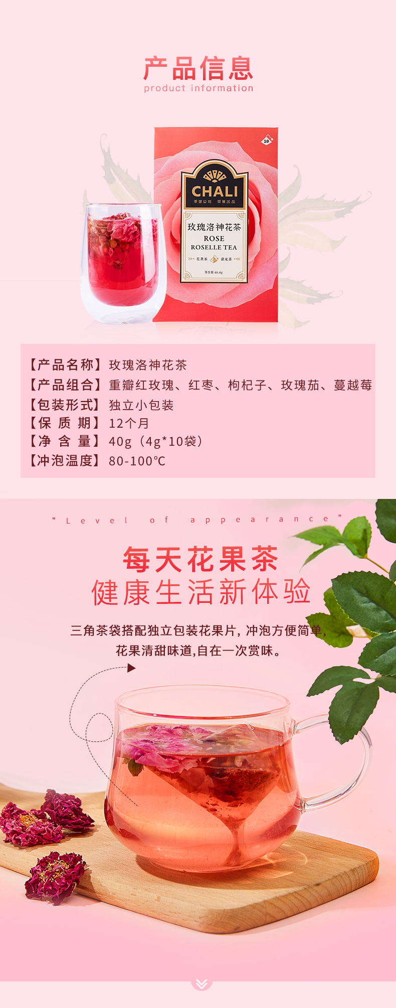 茶里 玫瑰洛神花茶 40g(4g*10包)
