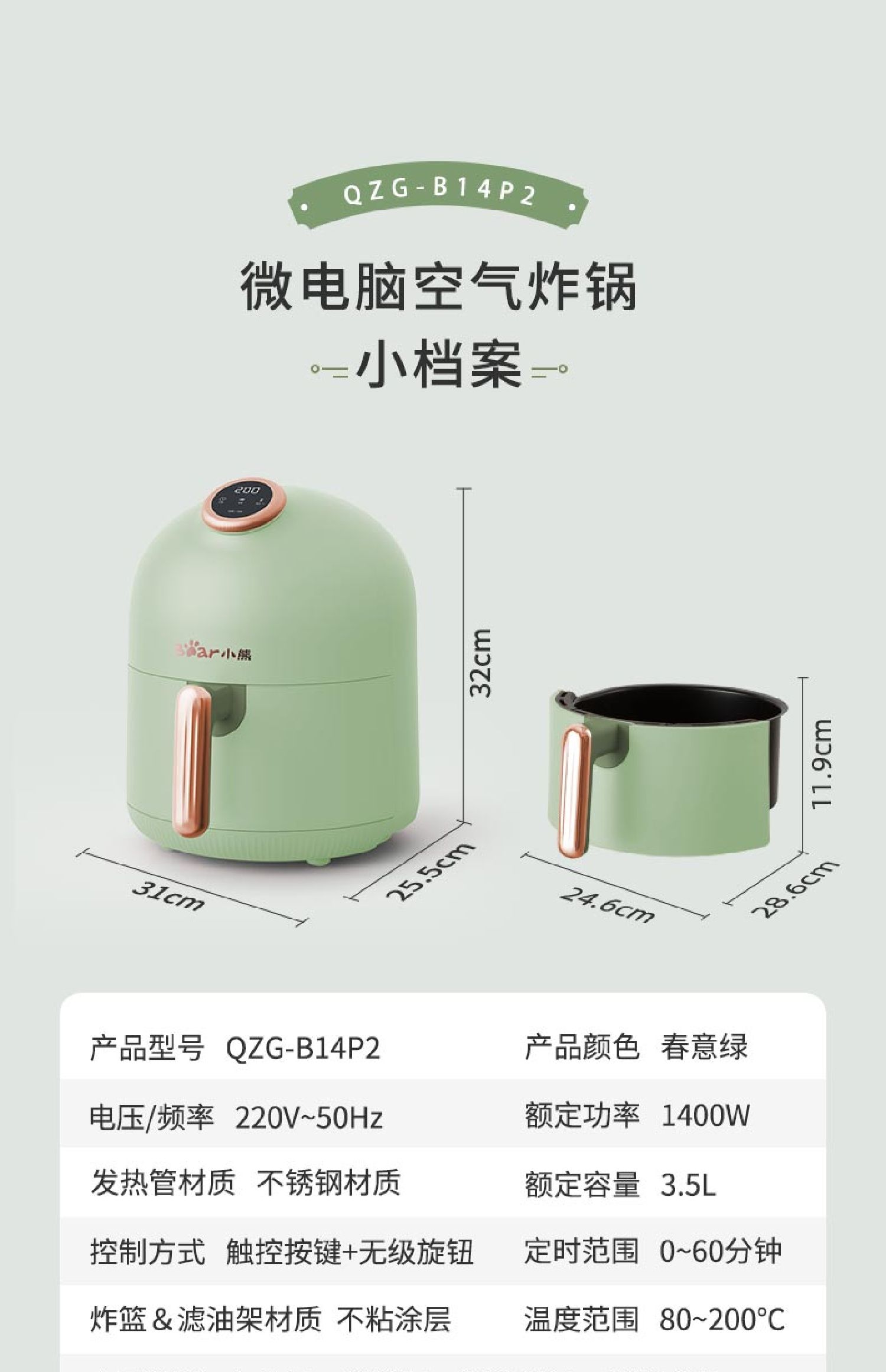 小熊 QZG-B14P2 电烤炉(空气炸锅)