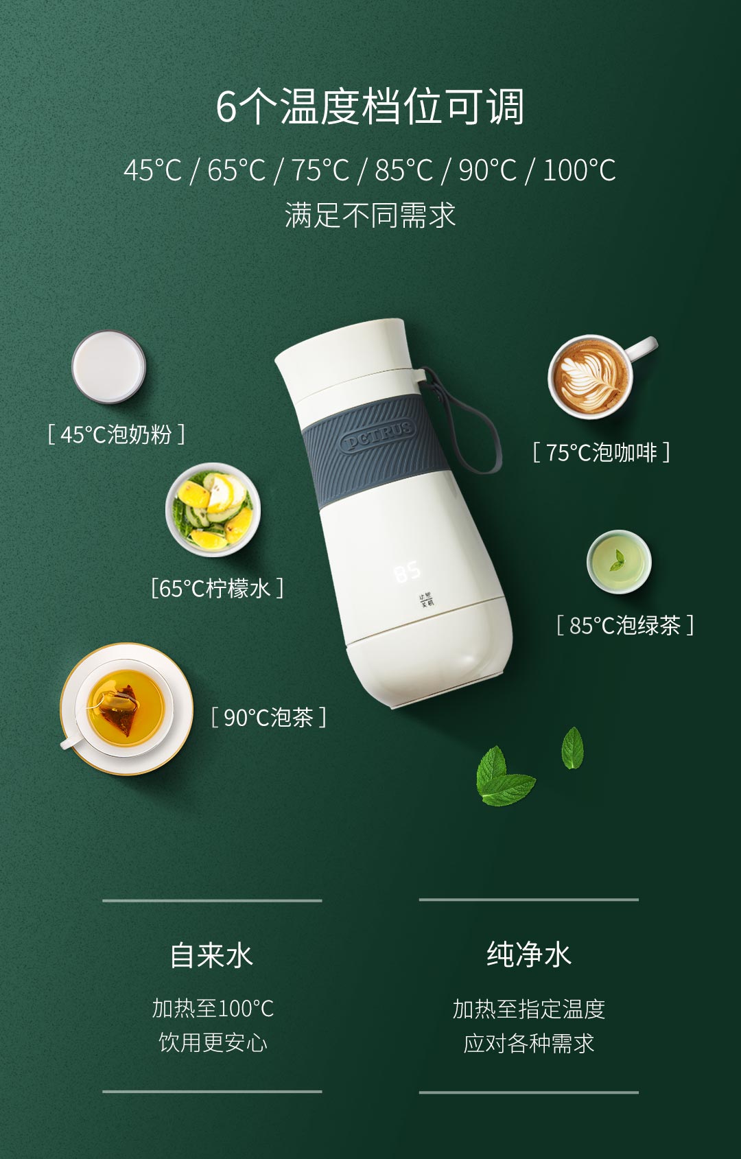 柏翠(petrus)便携式电热水壶保温杯烧水杯家用宿舍旅行出差烧水壶PE2822 白色