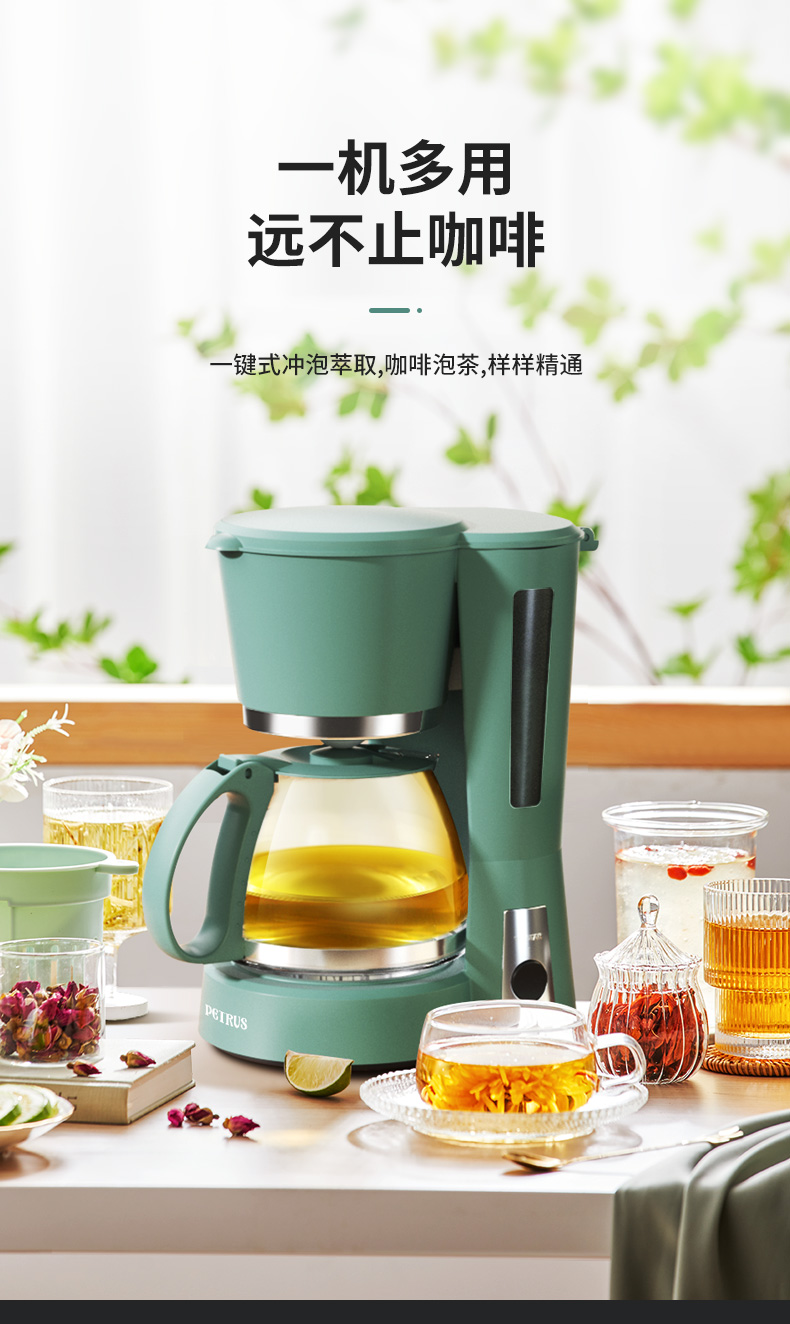 柏翠(petrus)咖啡机家用小型迷你大容量美式滴漏壶滴滤机泡茶机PE2100 浅绿色