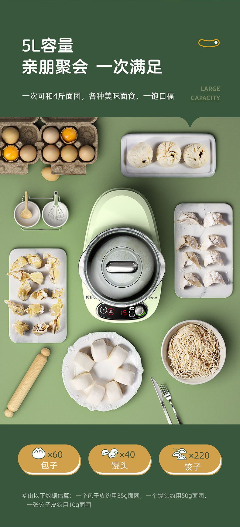 柏翠 (petrus)和面机搅面机厨师机家用小型发酵醒面搅面PE4300