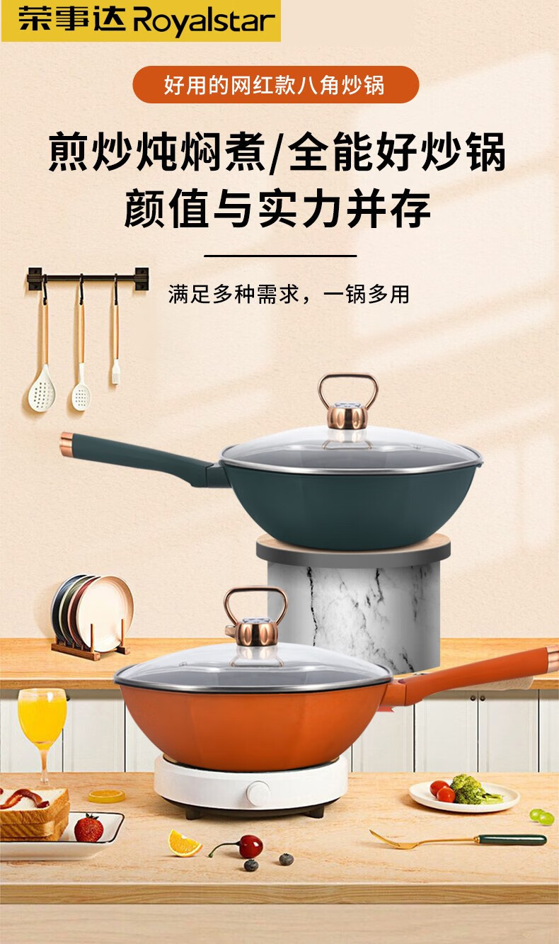 荣事达(Royalstar)网红八角不粘炒锅RG-TBJ32SN 橙色