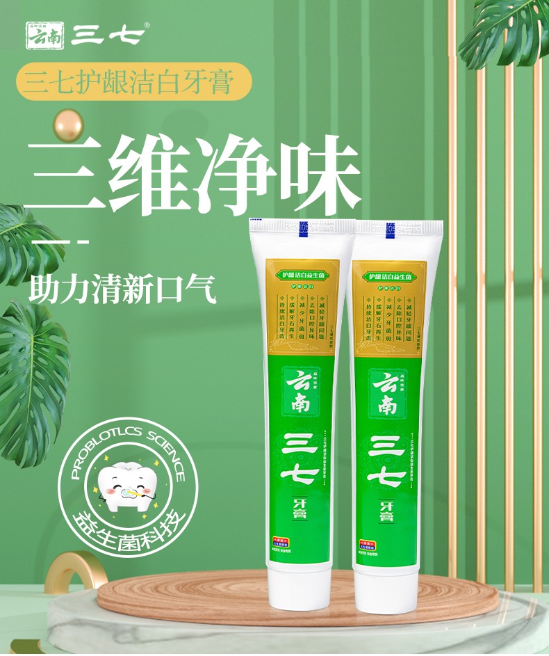 云南三七护龈洁白益生菌牙膏210g