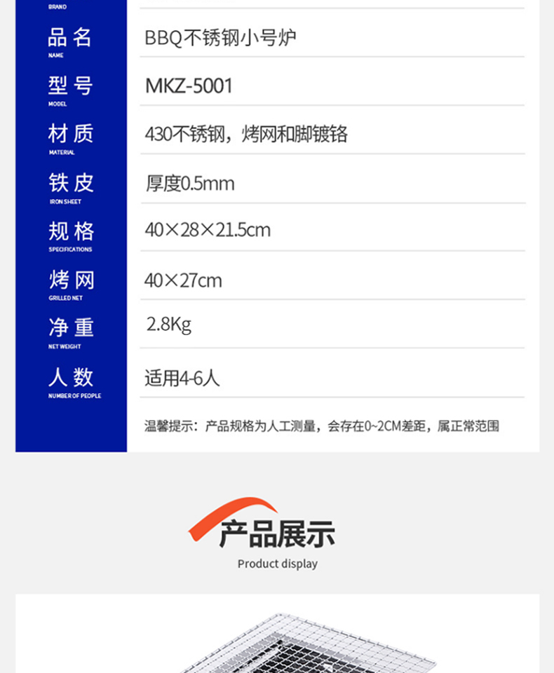 Maki zaza 不锈钢加厚烧烤炉 5001