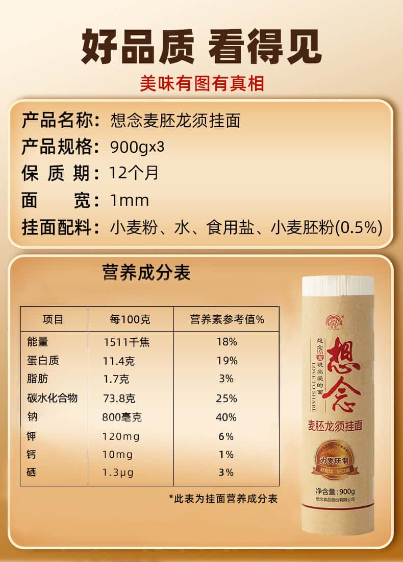 当前位置: 首页 > 佳节优选 > 天瑞优品 > 想念 麦胚龙须挂面900g*3