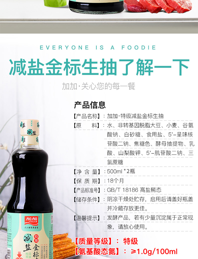 加加 500ml减盐金标生抽*2