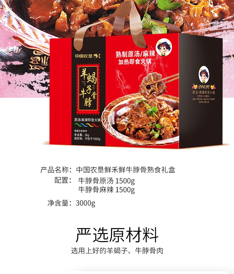鲜禾鲜 牛脖骨礼盒(牛脖骨1500g*2盒 (麻辣原汤口味随机))