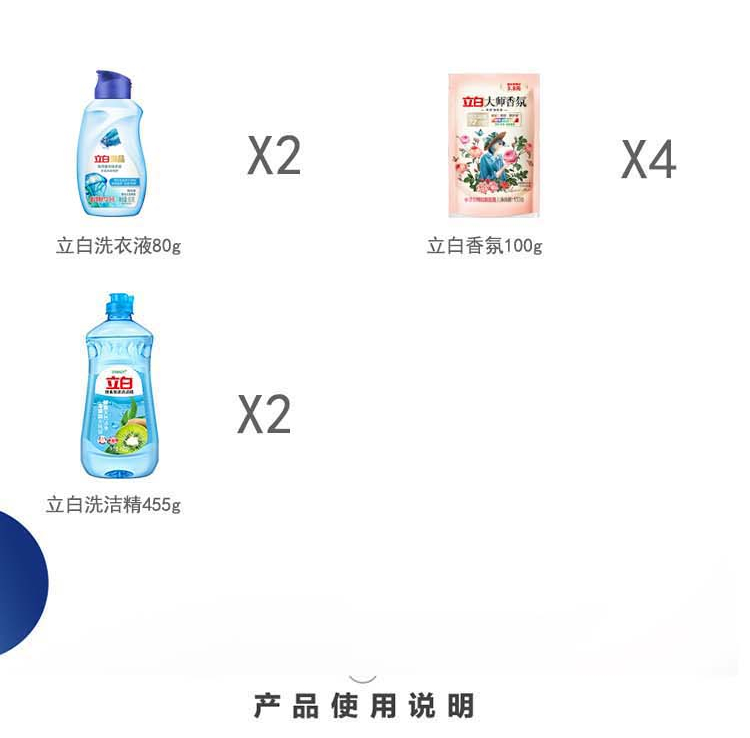 产品配置:立白酵素洗洁精455g*2/立白大师香氛洗衣液100g 玫瑰花香*4/立白御品海洋精华手洗内衣特护洗衣液80克*2