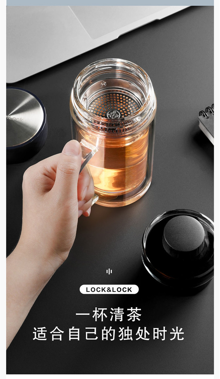 乐扣乐扣 风尚双层办公杯玻璃杯