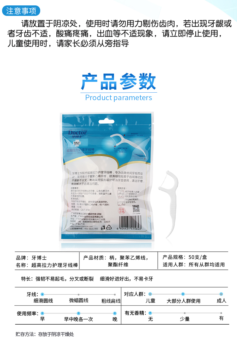 牙博士加配疗超高拉力护理牙线棒100支/袋