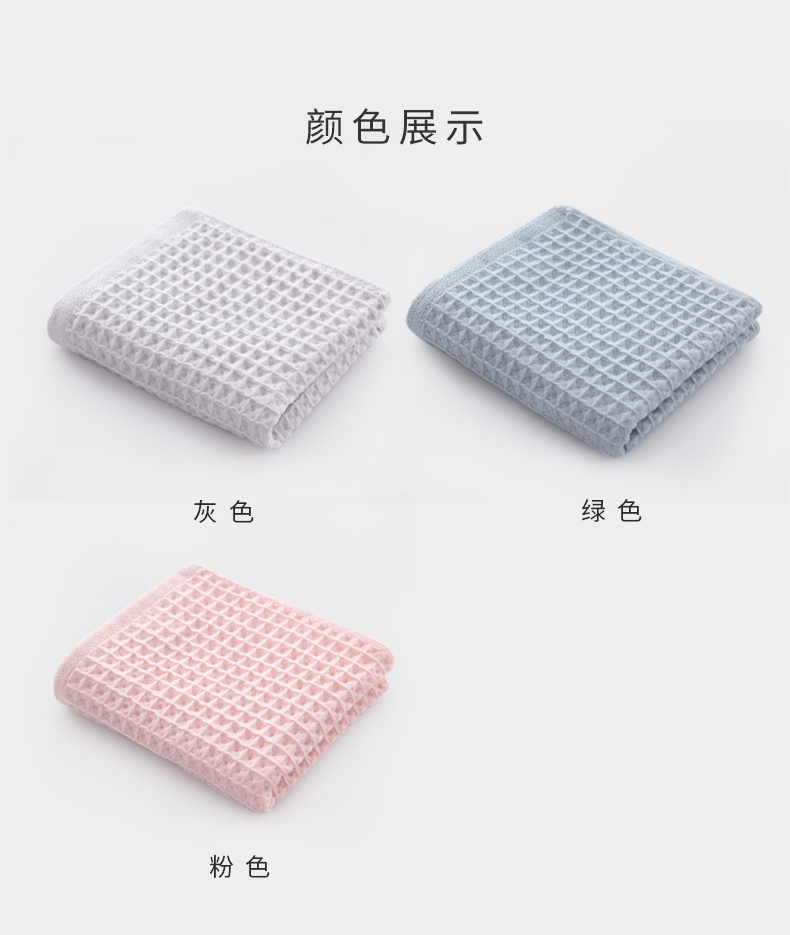 图强 纯棉毛巾家用成人男女柔软不易掉毛华夫格速干全棉面巾3条装