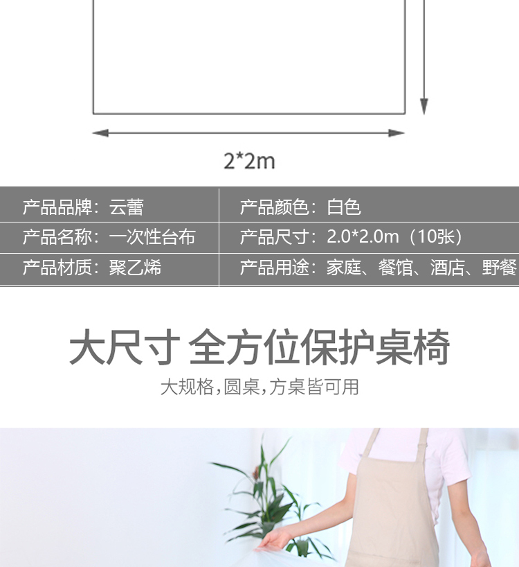 云蕾 一次性加厚台布桌布 2米*2米 十只装 11219
