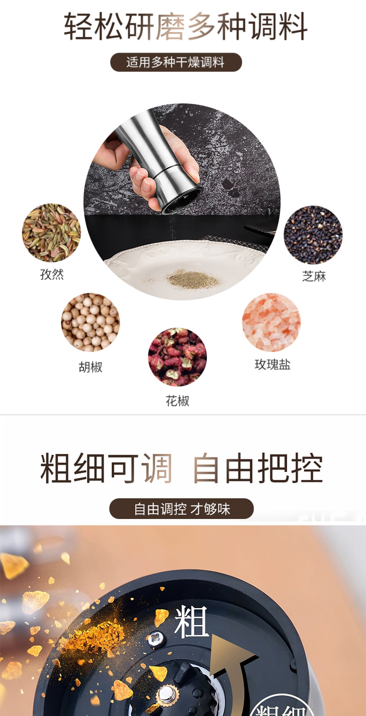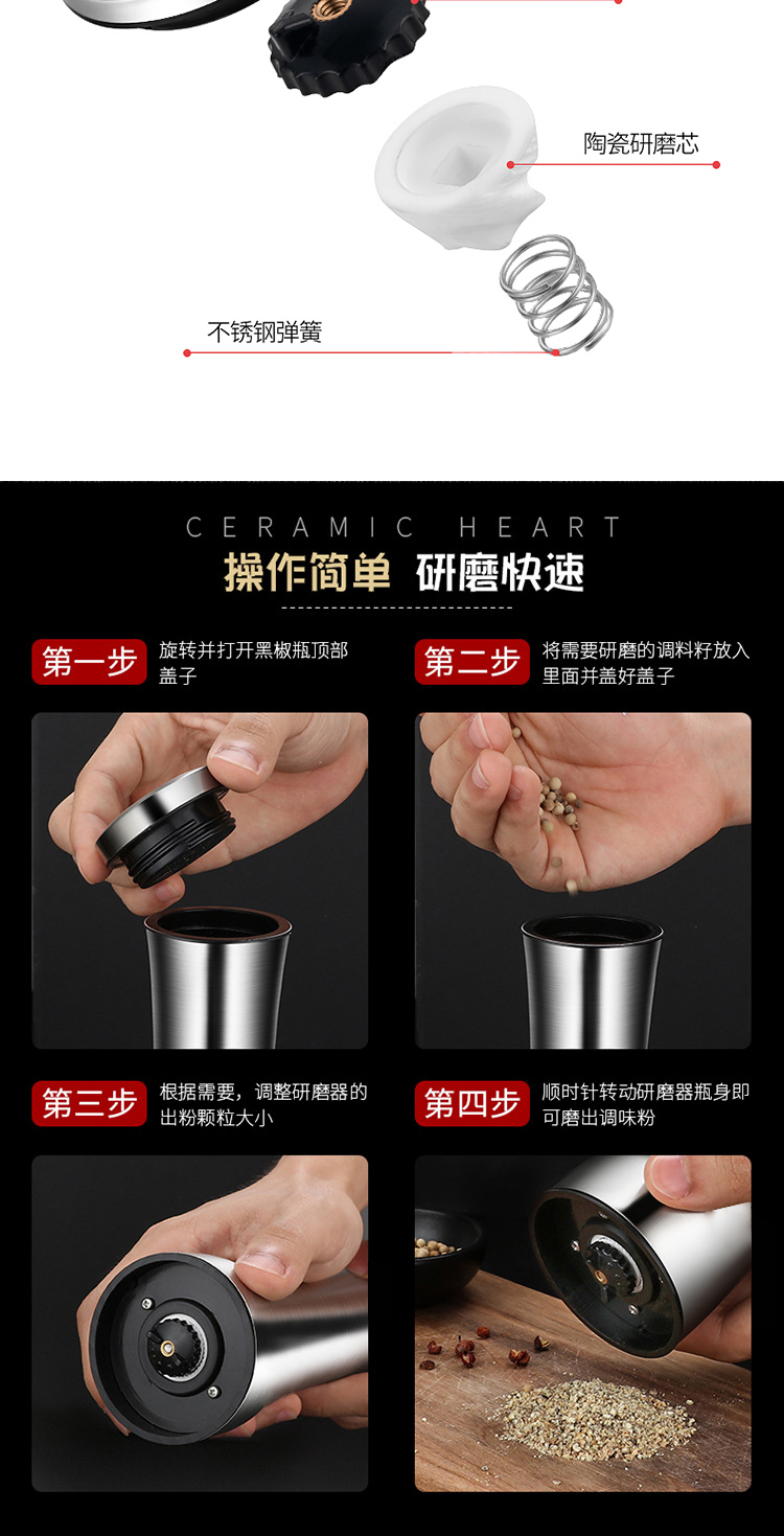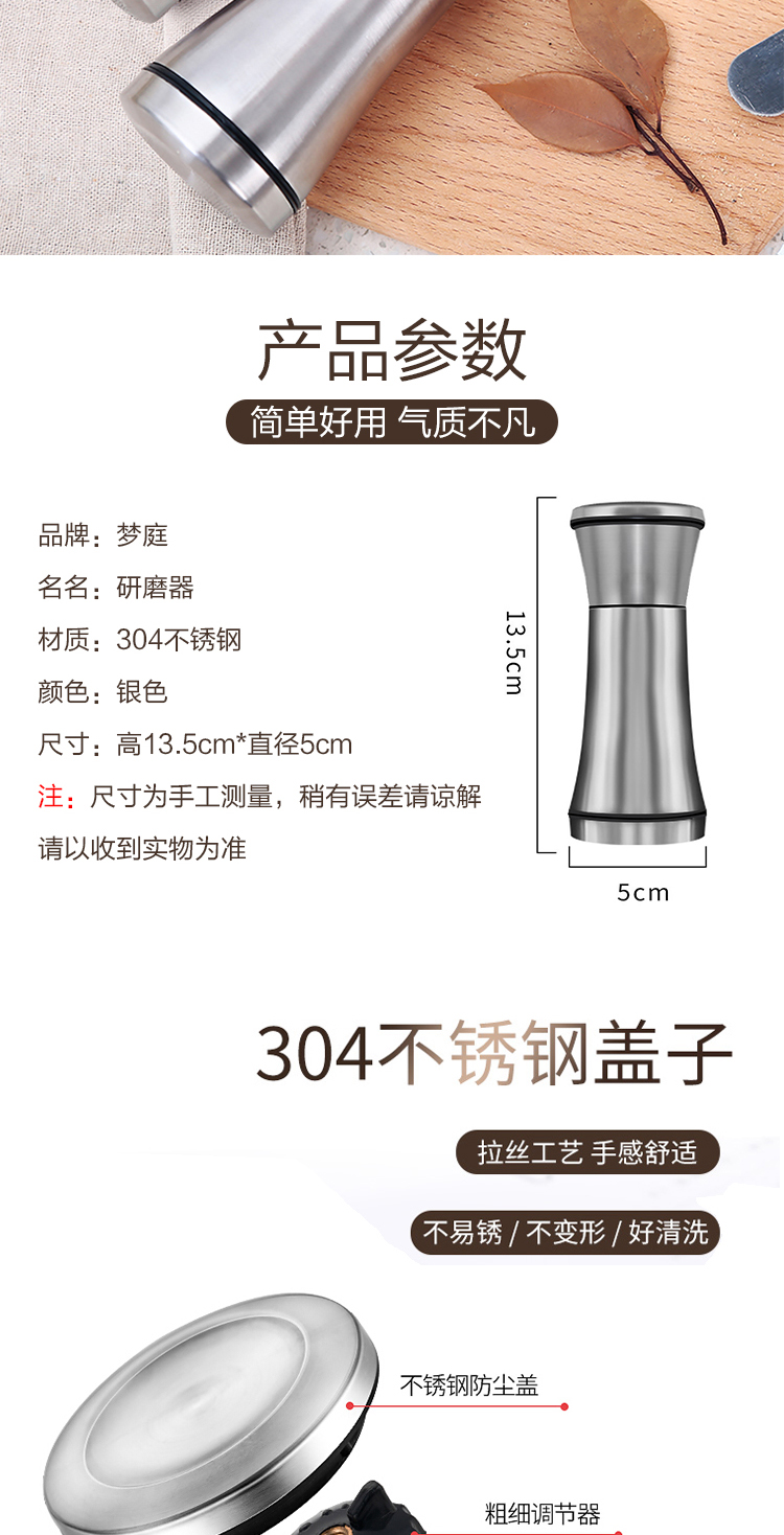 梦庭 304不锈钢陶瓷芯胡椒研磨器