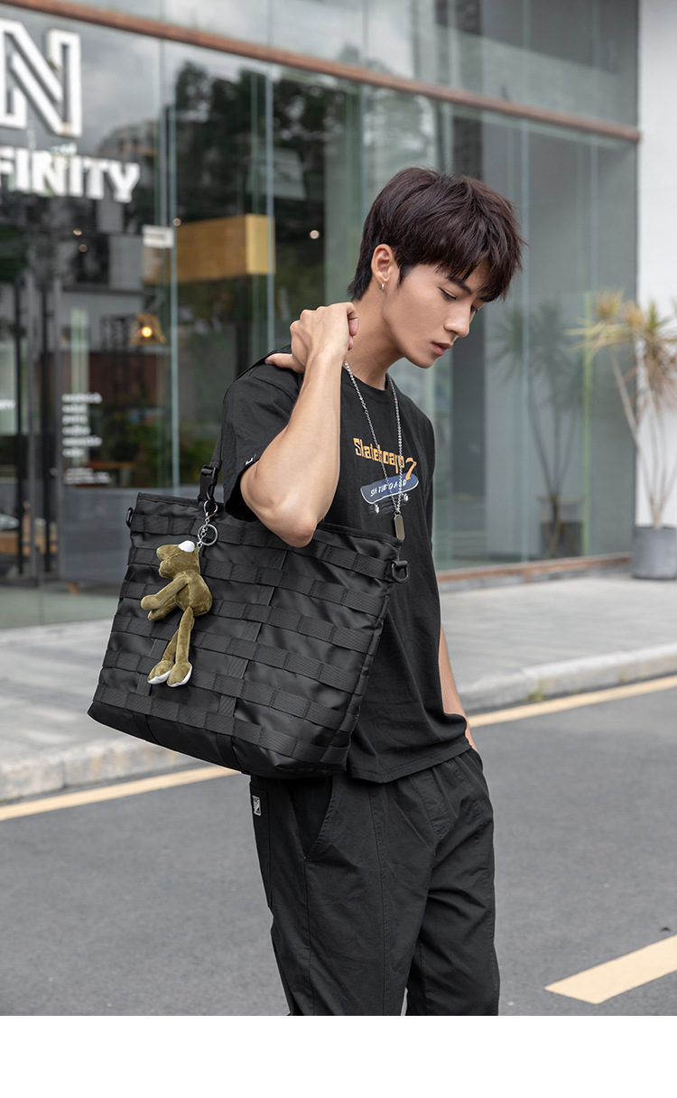 日系潮牌简约单肩包机能风男女斜挎包尼龙布大容量手提包托特包