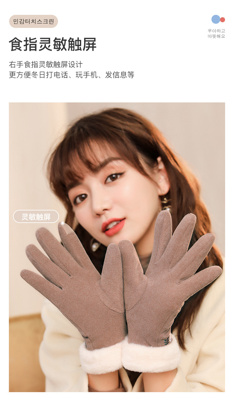 秋冬季触屏保暖手套男女士户外加厚防风自发热防寒可爱毛绒手套