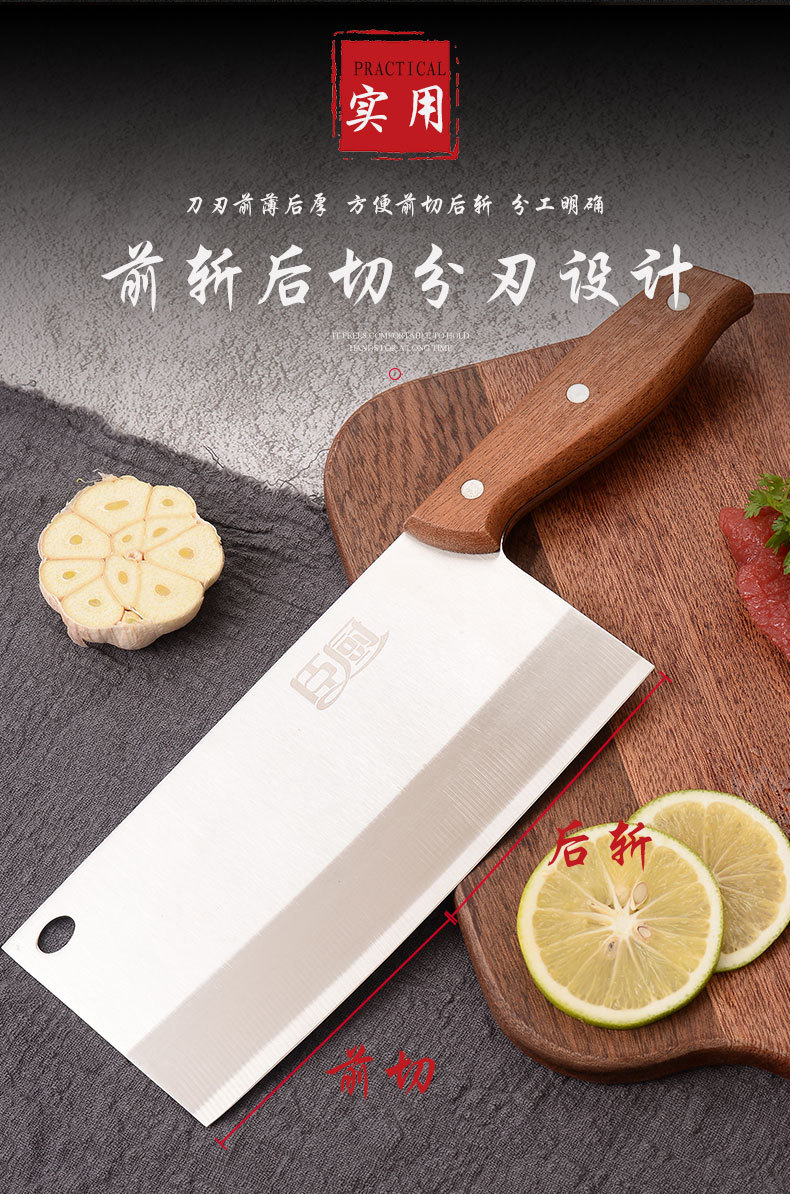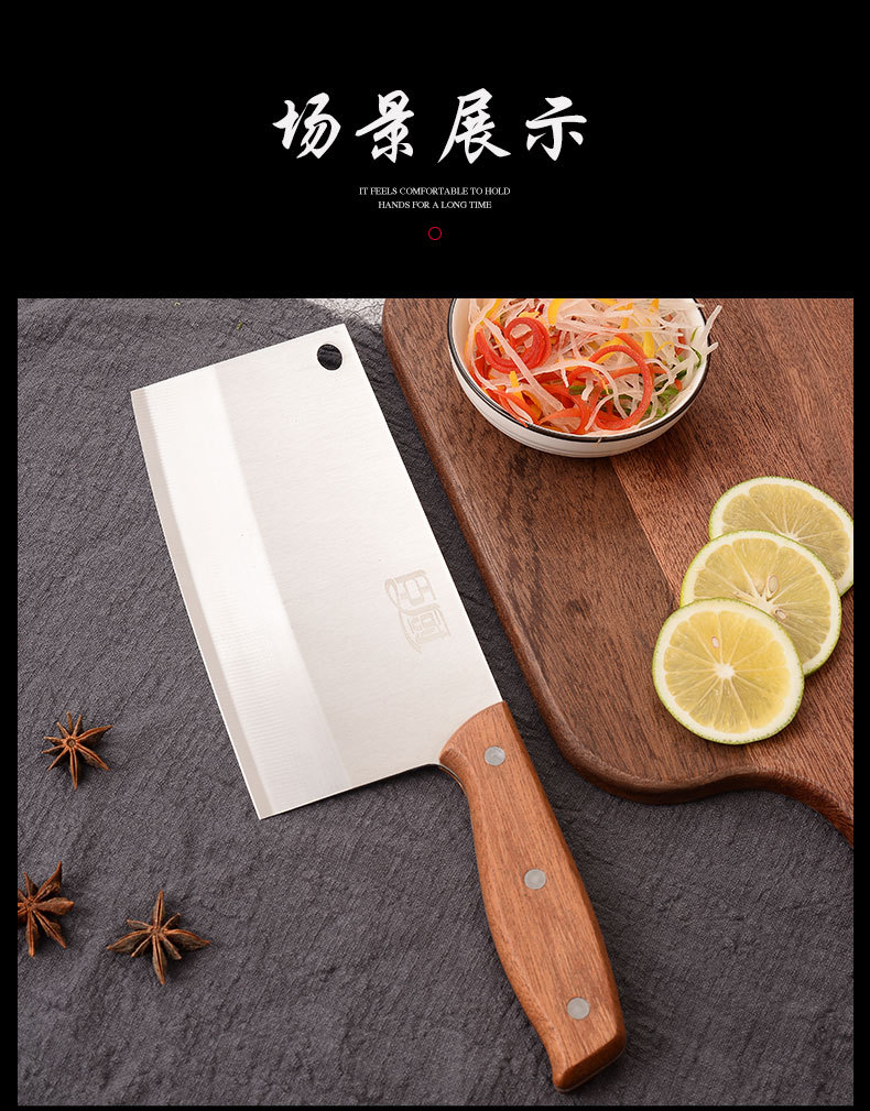 不锈钢菜刀家用厨房切片切菜刀手工开刃锋利木柄斩切刀中式厨用刀
