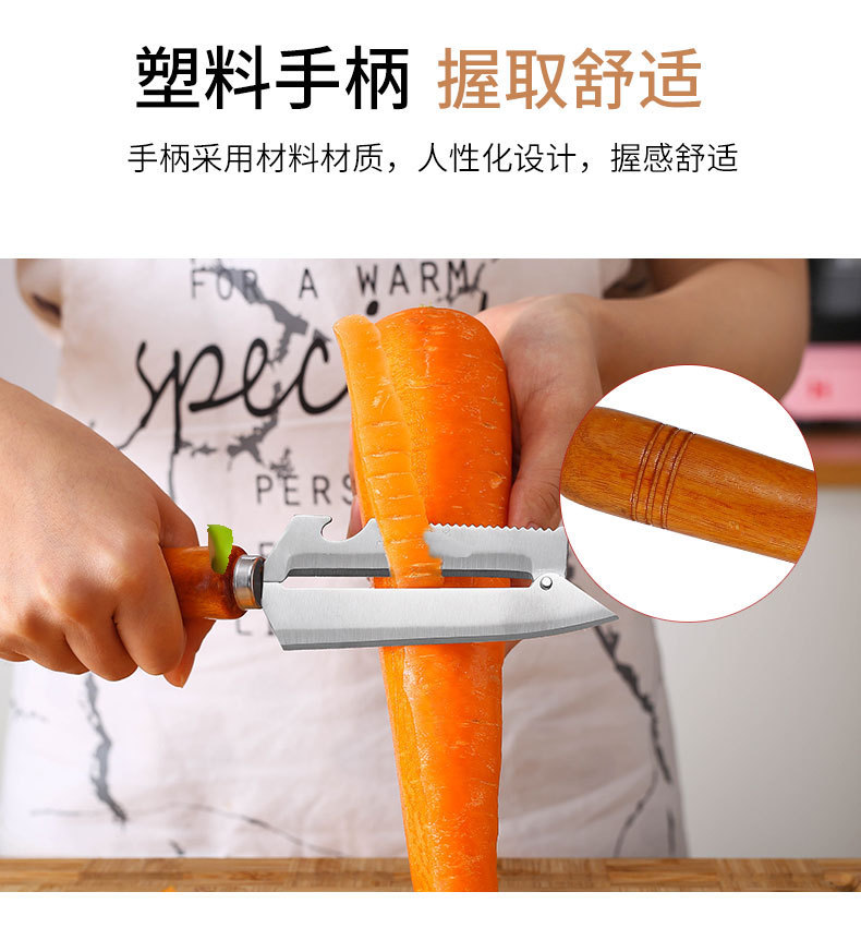 不锈钢家用多功能削皮器厨房工具水果刨刀菠萝刀甘蔗刀木柄去皮器