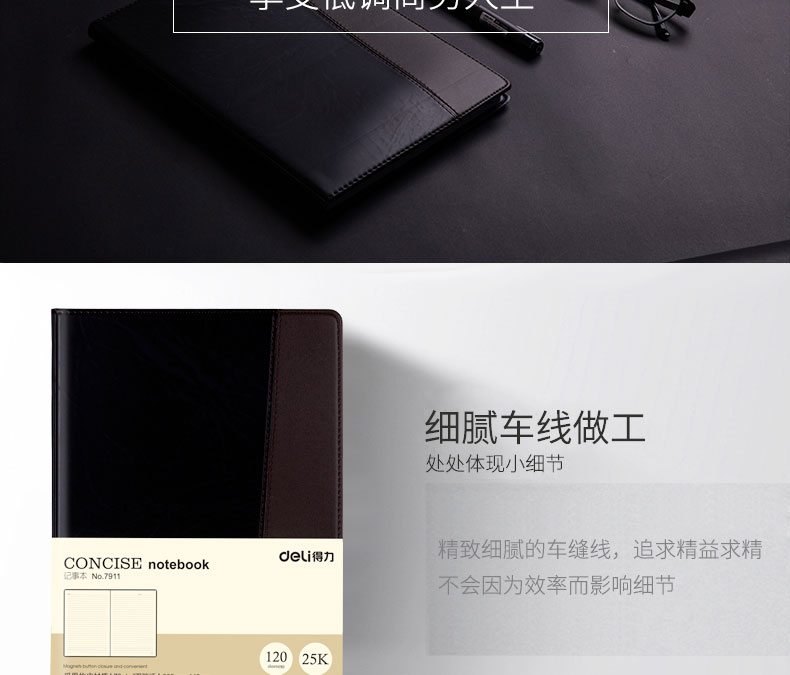 得力多功能时尚皮面笔记本