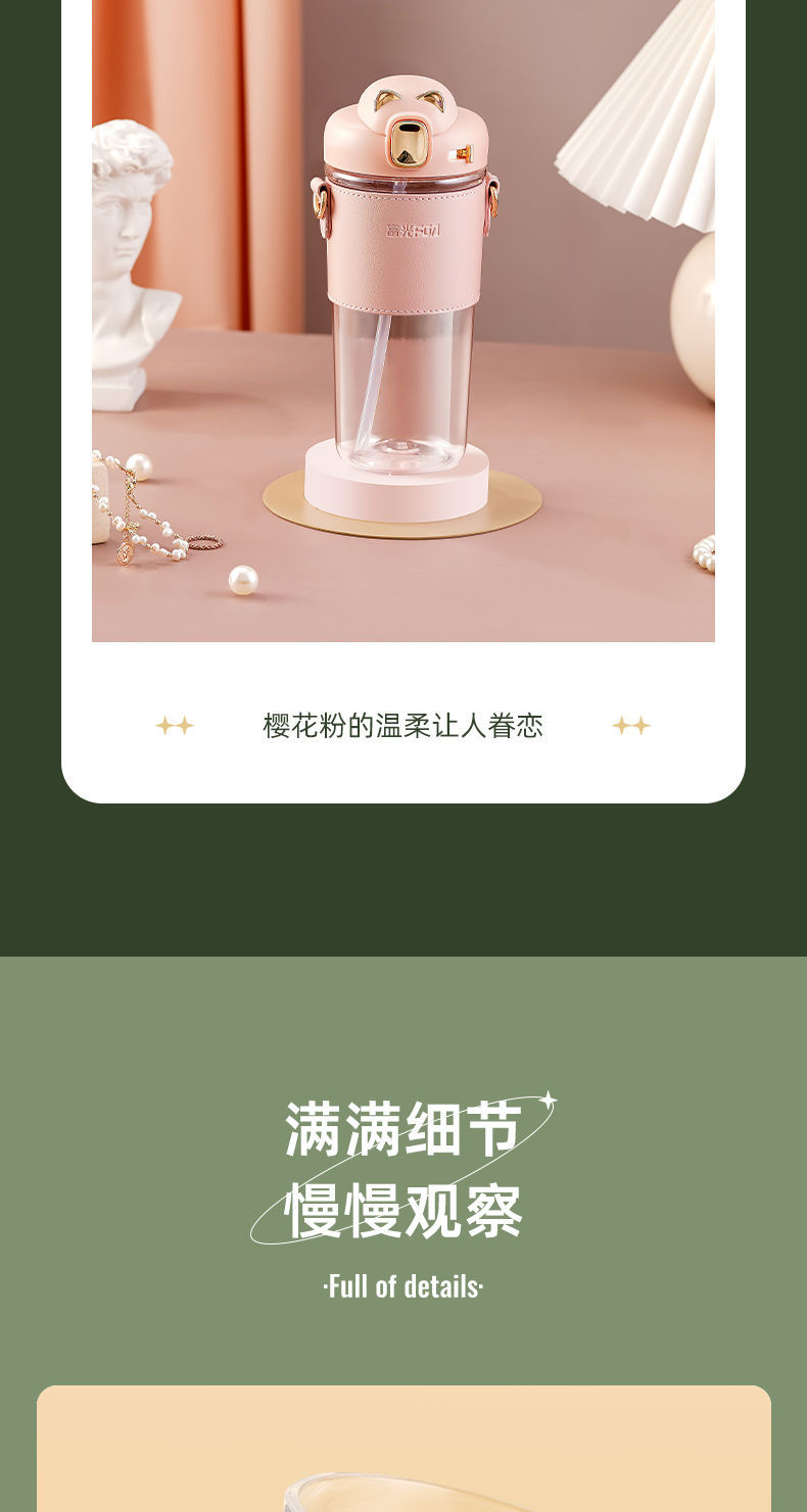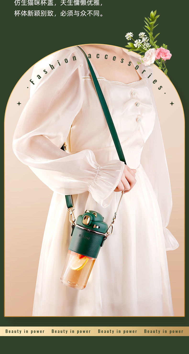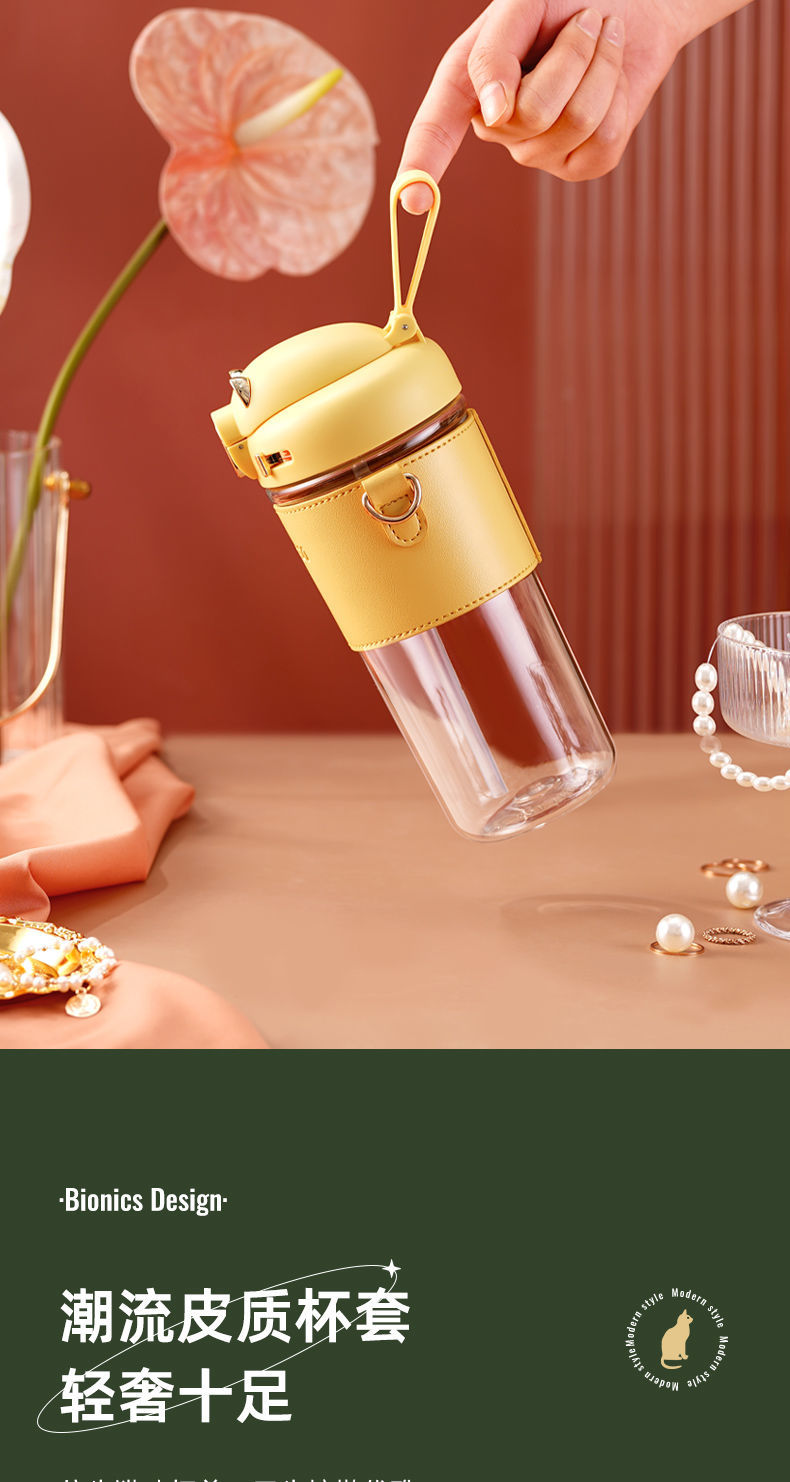 富光Tritan吸管杯高档水杯女生夏季高颜值新款便携带皮套随行杯子:
