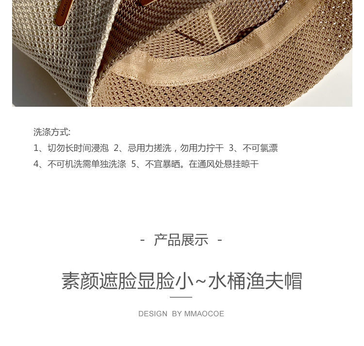 帽子女圆脸大脸显瘦渔夫帽遮阳防晒编织ins日系水桶帽子专柜新款: