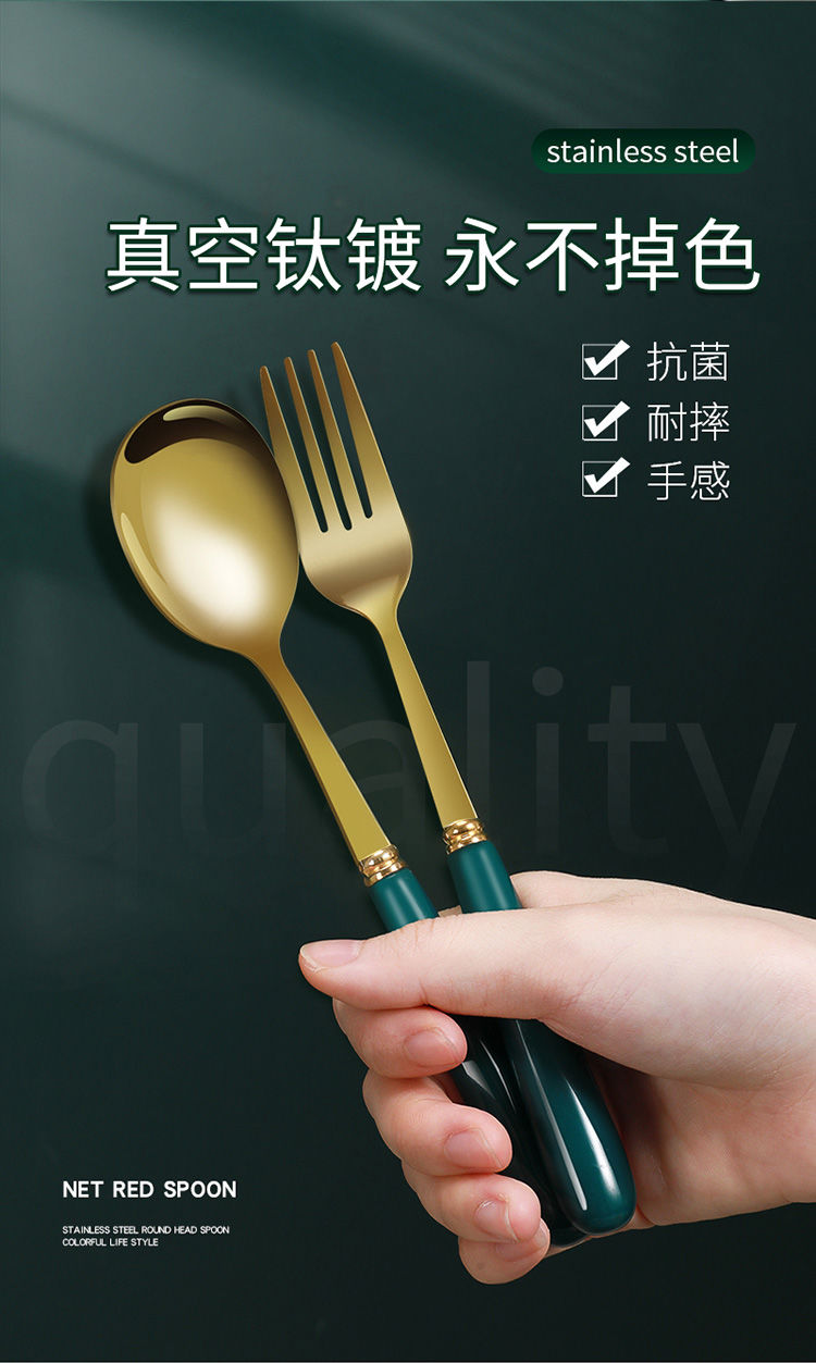 勺子不锈钢304加厚陶瓷柄高颜值网红勺: