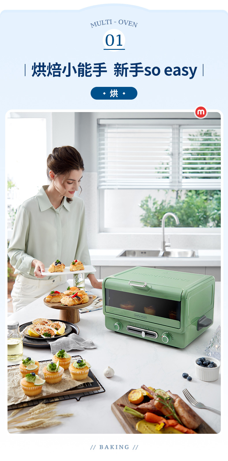 摩飞-多功能电烤箱MR8800绿/红/蓝/白