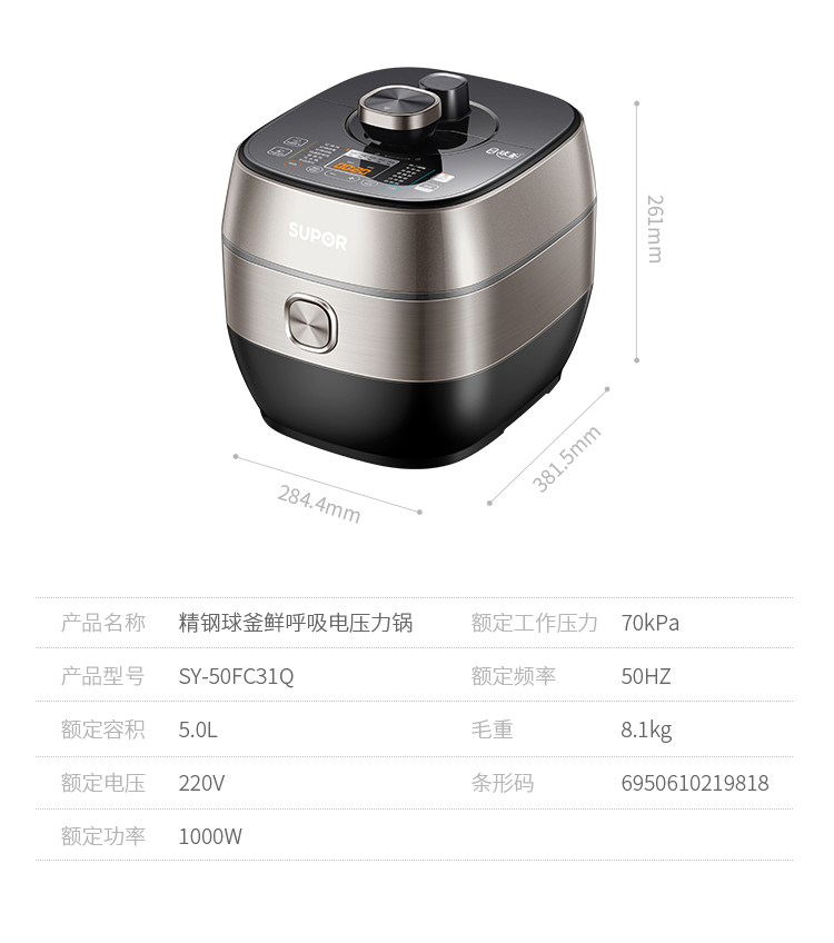 苏泊尔鲜呼吸电压力锅SY-50FH31Q/5L