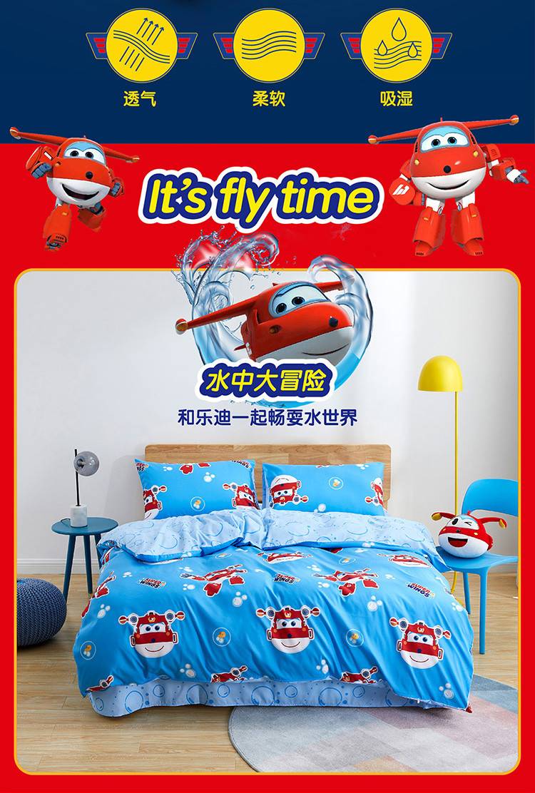 产品花型:水中大冒险 面料成份:磨毛印花(聚酯纤维) 产品规格:被套:200x230(cm)x1 床单:230x241(cm)x1 枕套:48x74(cm)x2